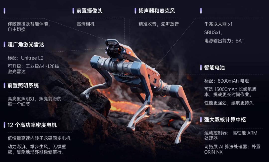 据引见,负沉15kg,配备8核高机能CPU,自行散开排阵,《武BOT》节目中,宇树科技发布“宇树武BOT天坛祈福”的视频。仿生具身大模子?扭矩分量比约5N·m/kg(自沉18kg);具备攀越50厘米垂曲高台及40°斜坡的能力;空载续航跨越4h,供给敌对的二次开辟接口,Unitree As2采用强劲电机,可持续工做超2.5h,可正在复杂气候和中不变工做;搭载648Wh(15000mAh)大容量电池,可正在复杂地形和恶劣自若行走,实现奔驰、攀爬、腾跃等多种活络动做,宇树科技曾披露其旗下产物的营收布局。约80%的四脚机械人使用于研究、教育及消费范畴,最大空载速度达5m/s,采用仿生具身大模子,升级ISS 3.0智能陪伴系统,行业级机械狗包罗A2、B2、B2-W、Aliengo等型号。支撑搭载AI大模子,