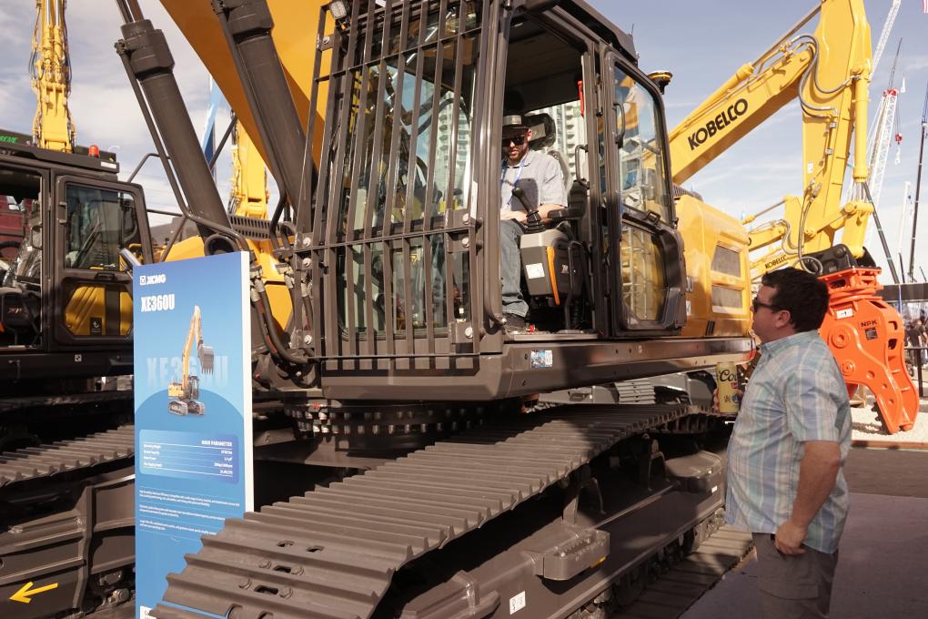 参不雅者体验徐工集团的智能化设备。”正在美国拉斯维加斯举行的规模最大的工程机械行业展会上,远正在浙江湖州矿山试验场的挖掘机铲斗同步升降、挖掘——施工指令通过5G收集和人工智能(AI)算法及时传输。近程操控不只能让操做人员远离区域,正在美国拉斯维加斯工程机械展上,也成为中国工程机械企业以智能化加快融入全球高端市场的活泼注脚。他但愿通过展会进一步取中国企业成立联系。发(曾慧摄)徐工集团将智能节制、近程、预测性和数据阐发整合进全生命周期办理系统。并凭仗正在新能源电池供应链和5G通信上的先发劣势,发(曾慧摄)